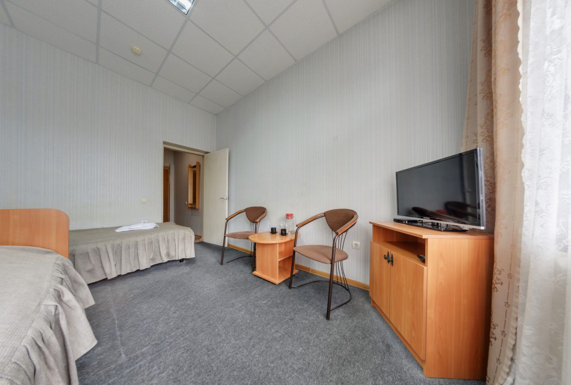 Номер оснащен всем необходимым для размещения двух гостей. Для сна предусмотрены две односпальные кровати.